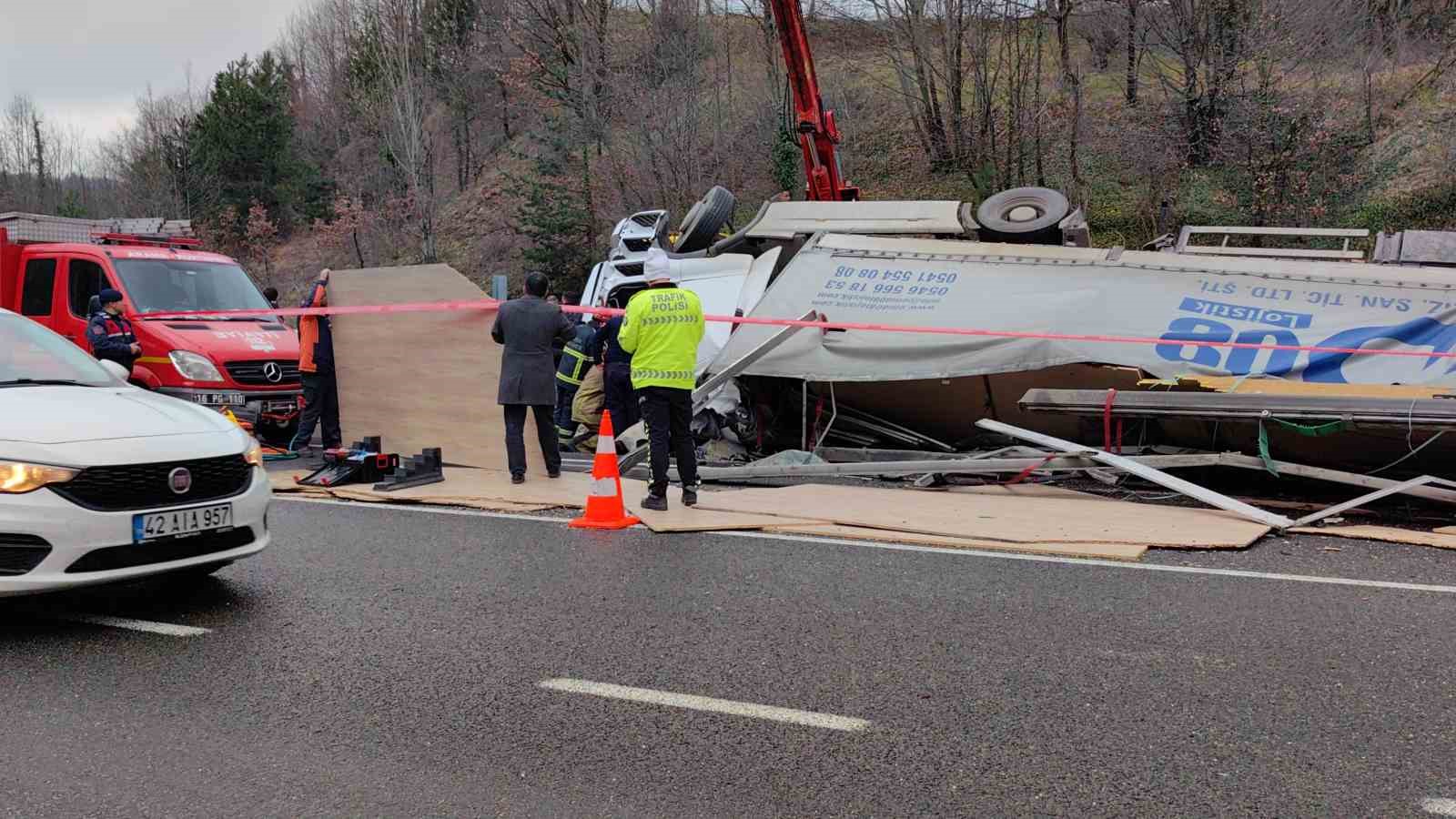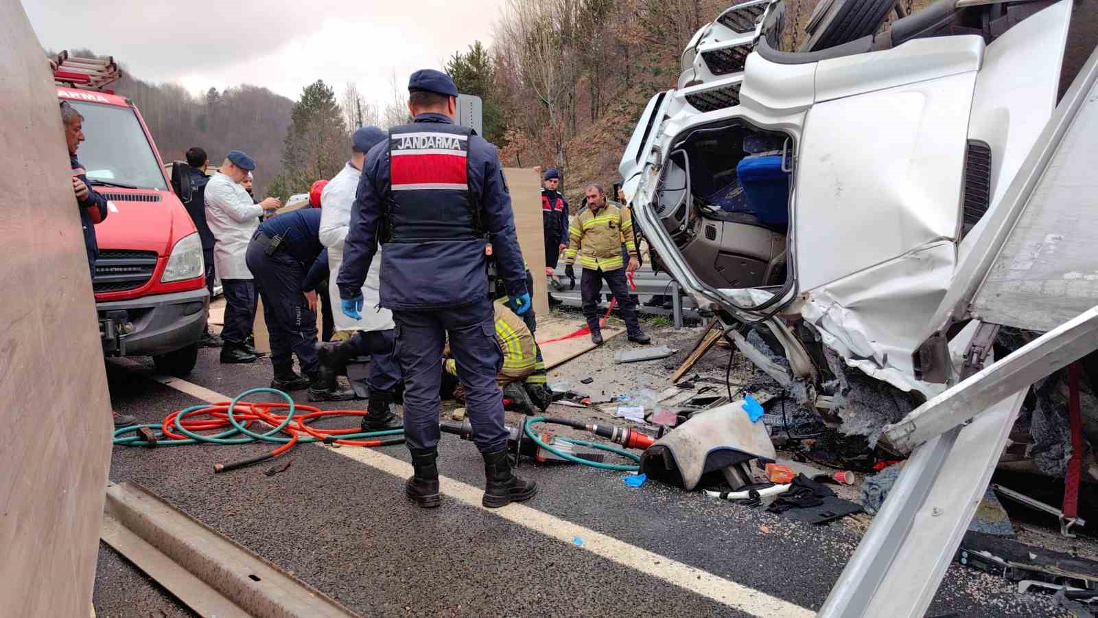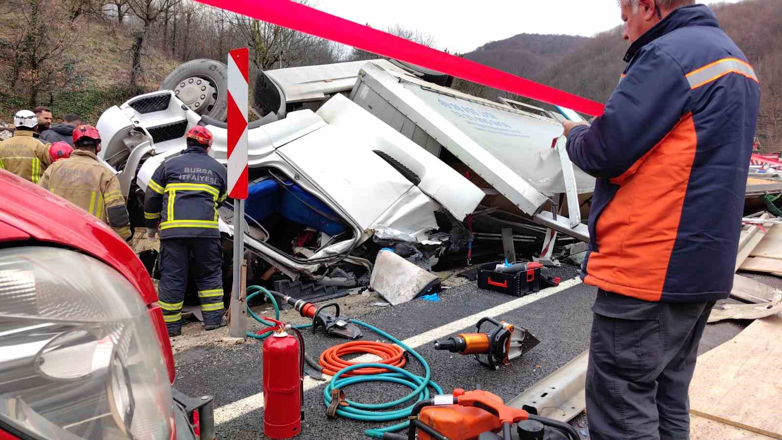 İhbar üzerine olay yerine çok sayıda polis, jandarma, itfaiye ve sağlık ekibi sevk edildi. Ekipler, sıkışan sürücünün olay yerinde hayatını kaybettiğini belirledi. Doğan’ın cansız bedeni morga kaldırılırken, tır ve yola saçılan suntalar vinç yardımıyla yoldan kaldırıldı.