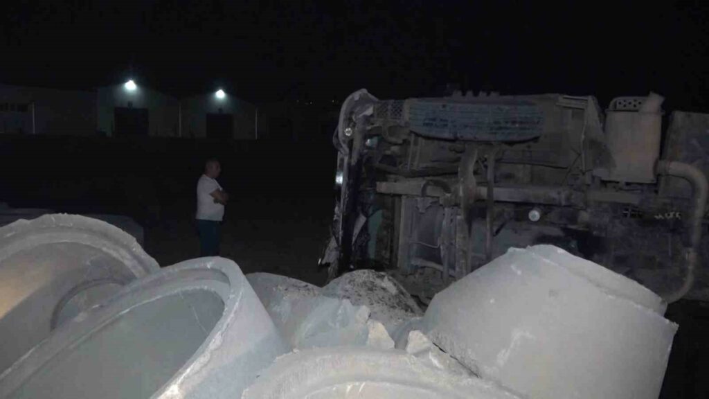 Edinilen bilgiye göre, Kayapa istikametinden merkez istikametine giden 16 BDR 644 plakalı tırın sürücüsü aracın direksiyon hakimiyetini kaybederek yol kenarında bulunan kanalizasyon borularına çarptı.