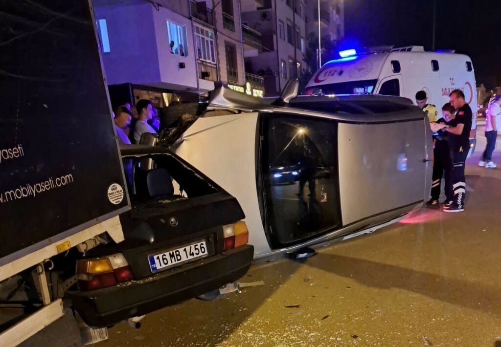 Bursa’nın İnegöl ilçesinde meydana gelen kazada kontrolden çıkan otomobil park halindeki 2 araca çarpıp devrildi. Yaşanan kazada otomobil sürücüsü ve yolcu yaralandı.