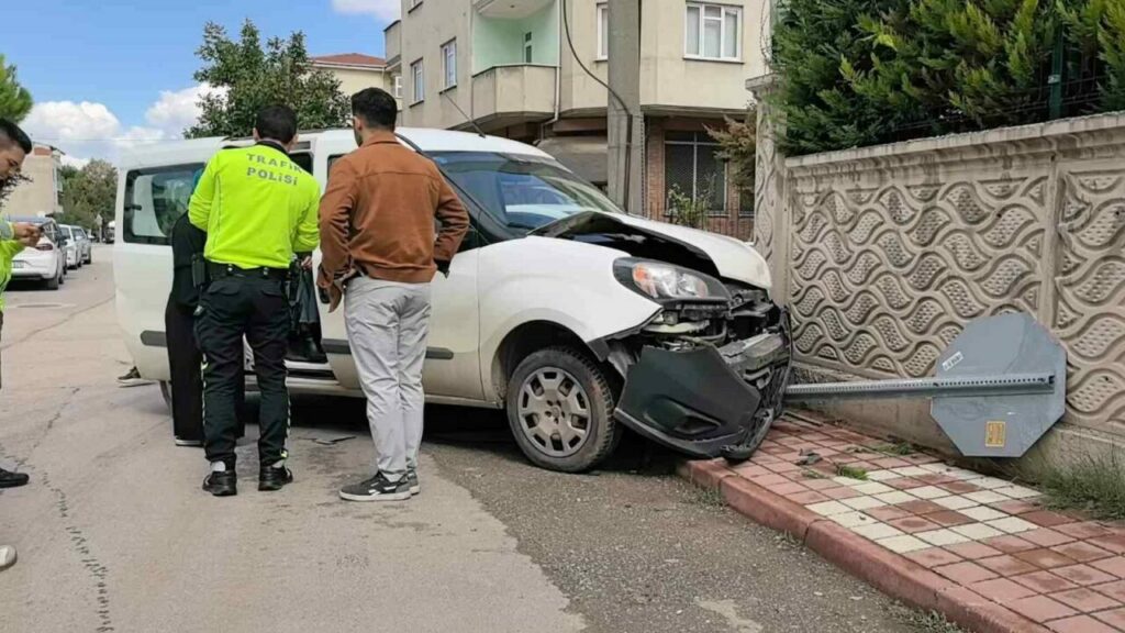 Bursa’nın İnegöl ilçesinde hafif ticari araç ile otomobilin çarpışması sonucu iki araç da site duvarına çarparak durabildi. Kazada sürücülerden biri yaralandı.