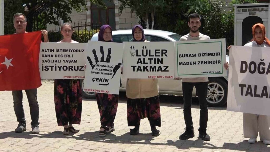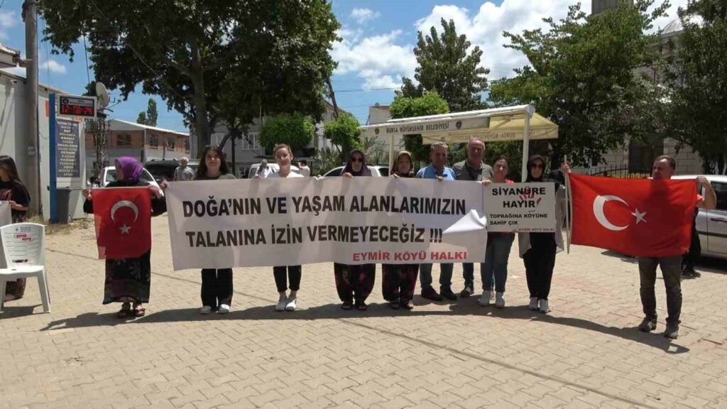 Bursa’da İnegöl ilçesi Eymir ve Sülüklügöl mahalleleri sınırları içerisinde altın ve değerli maden arama çalışmaları yapılmaya başladı. Köylüler, Eymir, Sülüklügöl, Kurşunlu, Süpürtü, Babaoğlu ve Küçükyenice mahallelerini etkileyen maden arama çalışmalarına tepki gösterdi. Eymir Mahallesi’nde ise köylüler DOĞADER öncülüğünde basın açıklaması gerçekleştirdi. Ellerinde pankartlarla köy meydanında toplanan köylüler, sloganlar attı.