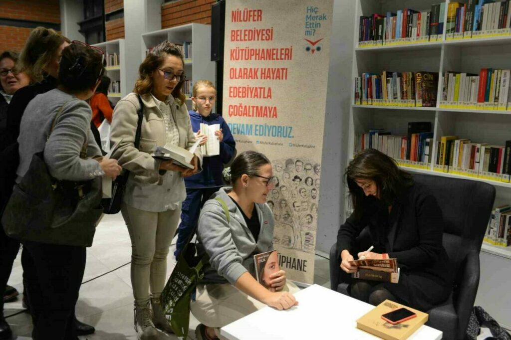 Söyleşinin sonunda katılımcıların sorularını da yanıtlayan ödüllü yazar Şebnem İşigüzel, son romanı Memoria’yı okurları için imzaladı.