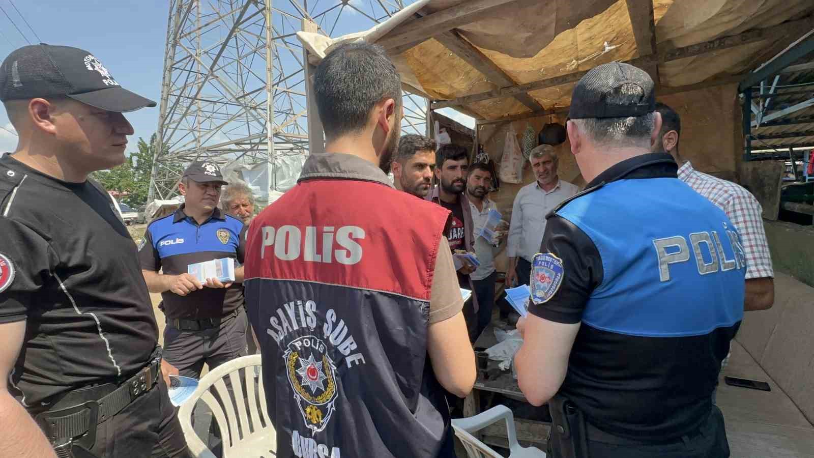 Polisler, kurban bayramı öncesi hayvan satıcılarının mağduriyet yaşamaması için kurban pazarlarına giderek bilgilendirme faaliyeti yaptı. Polisler esnafa 1763 adet broşür dağıttı.