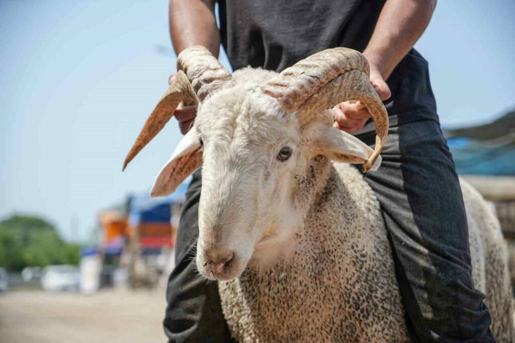 Bursa’da kurbanlık olarak satılan 4 boynuzlu koçu görenleri hayrete düşürüyor. Ortalama bir kurbanlık koç 25 ila 35 bin lira arasında alıcı bulurken, dört boynuzlu koçun sahibi her boynuz için 10 bin lira istiyor. Öte yandan çadır altında bekleyen koçlar sıcak hava sebebiyle terlerken, yetiştiriciler ise hayvanların serinlemesi için farklı yöntemlere başvuruyor.