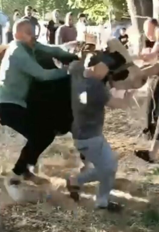 Bursa’nın Osmangazi ilçesinde bir grup aldıkları kurbanlık dananın iplerini esnek bırakınca, dana bir anda koşmaya başladı. 5 kişi danayı zapt etmek için uğraşırken, kalabalıktan ürken dana, kendisini durdurmak isteyenleri yerde sürükledi. O anlar kameraya yansıdı.