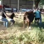 Bursa’da bir grup aldıkları kurbanlık danayı kaçırınca iplerle durdurmaya çalıştı. 5 kişinin zapt etmeye çalıştığı dana sahiplerini bir hayli uğraştırdı.