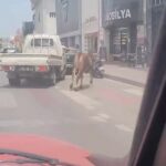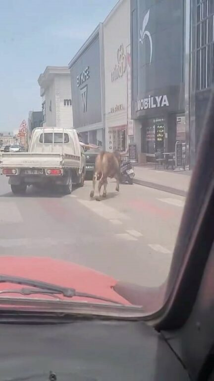 Mahmudiye Mahallesi Ertuğrulgazi Caddesi üzerinde gezen büyükbaş hayvan, sahibinin elinden kaçtı. Firar eden kurbanlığın peşine düşen sahibi, büyükbaş hayvanı uzun süre kovaladı. Araçla önü kesilen kurban kaçmaya devam etti. O anlar amatör kameraya saniye saniye yansıdı.
