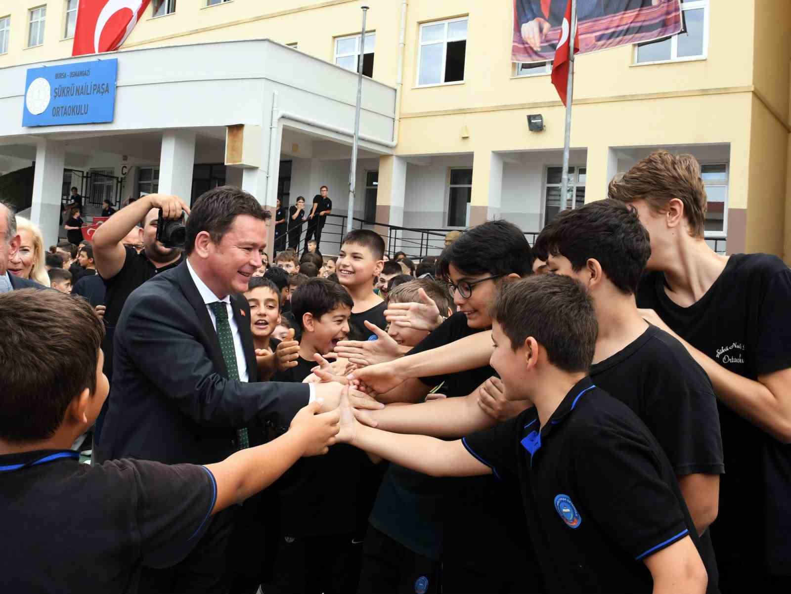 Okul bahçesinde toplanan çocuklara seslenen Başkan Aydın, “Bugün burada özgür ve bağımsız bir şekilde okuyabiliyorsanız, bizler bu kentte özgür bir şekilde yaşayabiliyorsak, bunu Büyük Önder Mustafa Kemal Atatürk ve silah arkadaşlarına borçluyuz. Şükrü Naili Paşa, Bursa’nın kurtuluşunda Keles’in Kıranışıklar Köyü’nden Canip Efe ve Harmancık Akalan Köyü’nden Saadettin Efe ile Bursa’nın kurtuluşunda önemli rol oynamıştır. 2 yıl, 2 ay, 2 gün süren esareti sonlandırmışlardır. Bu kahramanlarımızı rahmetle, minnetle ve şükranla anıyoruz. Hepsinden Allah razı olsun. İyi ki bu vatanın bağımsızlığı için mücadele etmişler ve iyi ki Kurtuluş Savaşı’nı kazanmışlar. 11 Eylül Bursa’nın kurtuluşu hepimiz için kutlu olsun” dedi.
