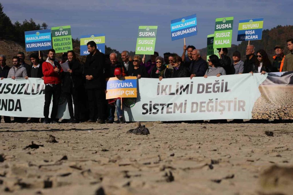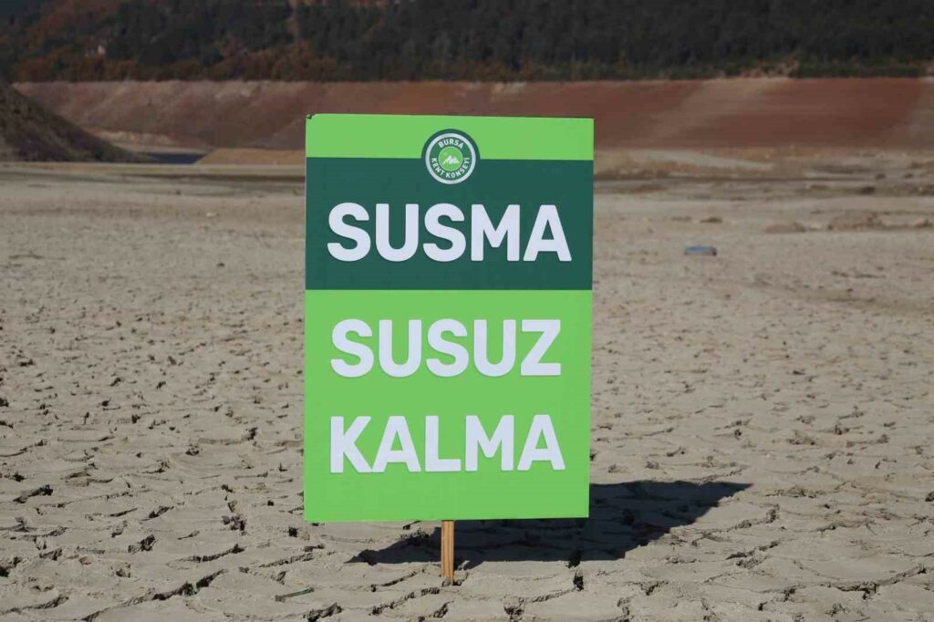 Bursa Kent Konseyi kuruyan Nilüfer Barajında basın açıklaması gerçekleştirdi. Kuruma tehlikesiyle karşı karşıya kalan Nilüfer Barajı’nda su seviyesi yüzde 2 olarak ölçüldü.