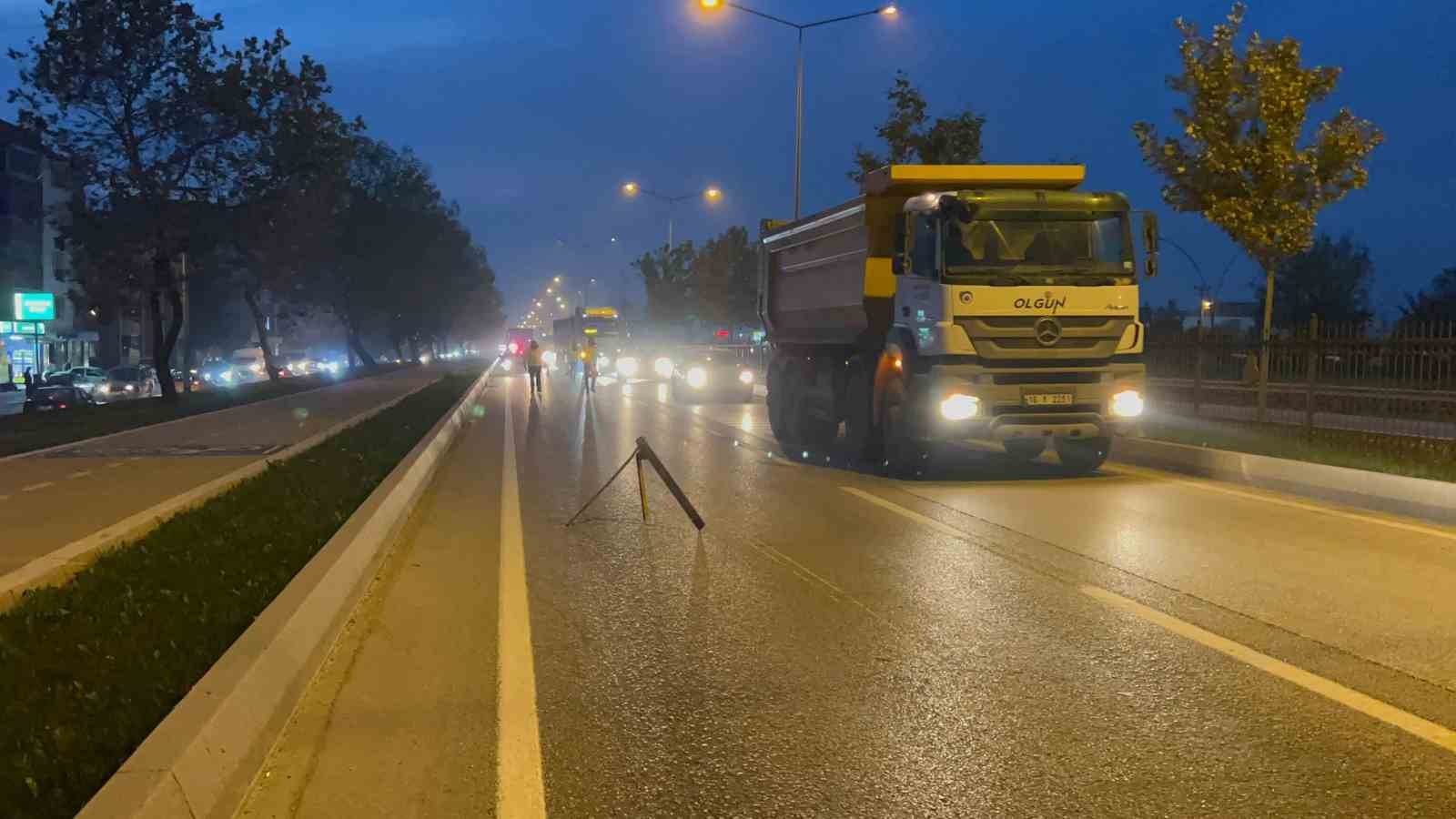 Polis ekiplerinin önlem almasıyla kamyonet çekici yardımıyla yoldan çekildi.