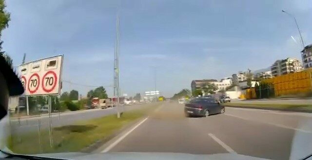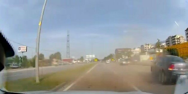 Bursa’da hareket halindeyken lastiği patlayan otomobil, orta refüjü aşarak karşı şeride geçti. Saniyelerle facianın kıl payı atlatıldığı diğer istikamete giden otomobildeki araç kamerası tarafından kaydedildi.