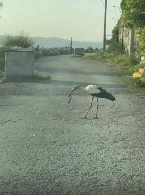 Bursa’da havaların ısınmasıyla ortaya çıkan yılanlar vatandaşları tedirgin ederken, leylek ve kartallar zehirli olup olmadığını umursamadan yılanları midesine indirdi.