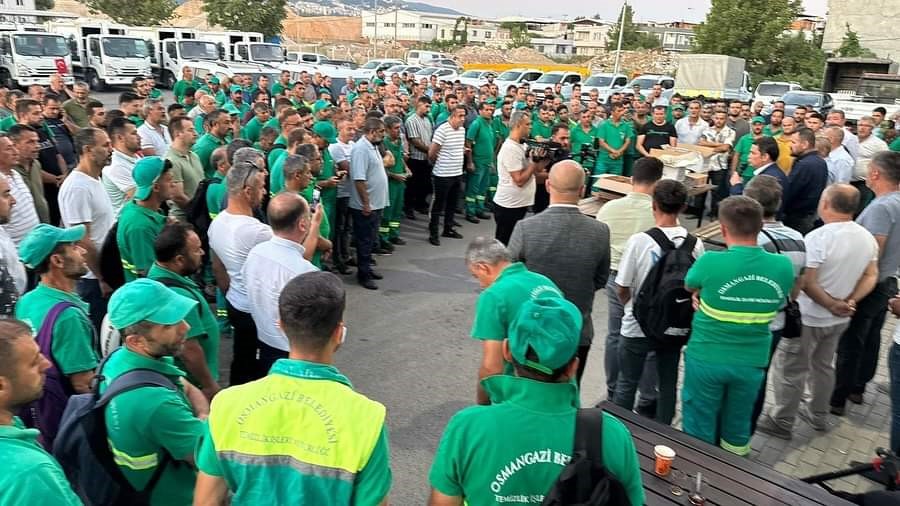 Osmangazi Belediye Başkanı Erkan Aydın, güne temizlik işçileriyle kahvaltı yaparak başladı.