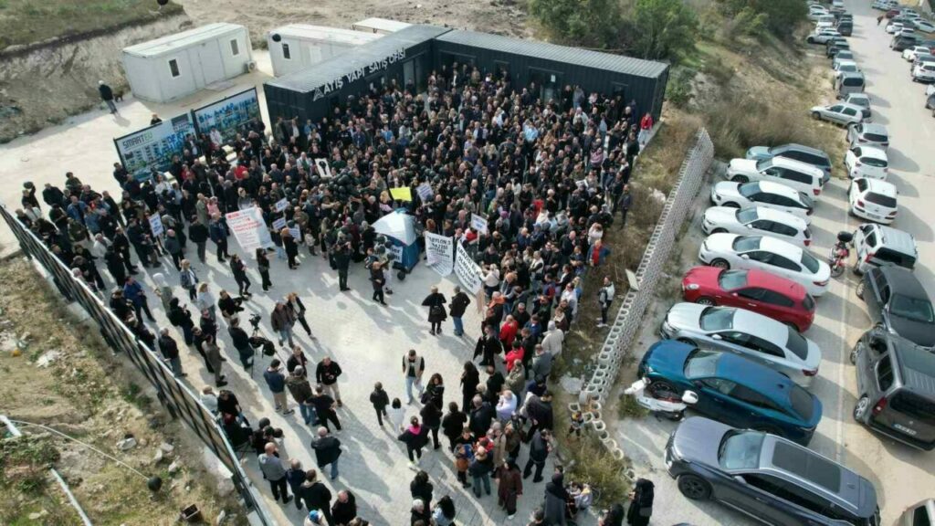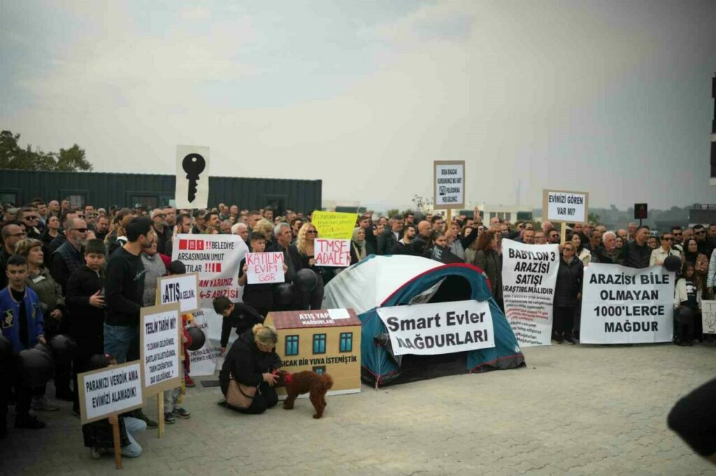 Bursa’da ev hayali kabusa dönen 3 bin 500 aile, şantiye önünde eylem yaptı. Mağdur aileler, gökyüzüne siyah balonlar bıraktı.
