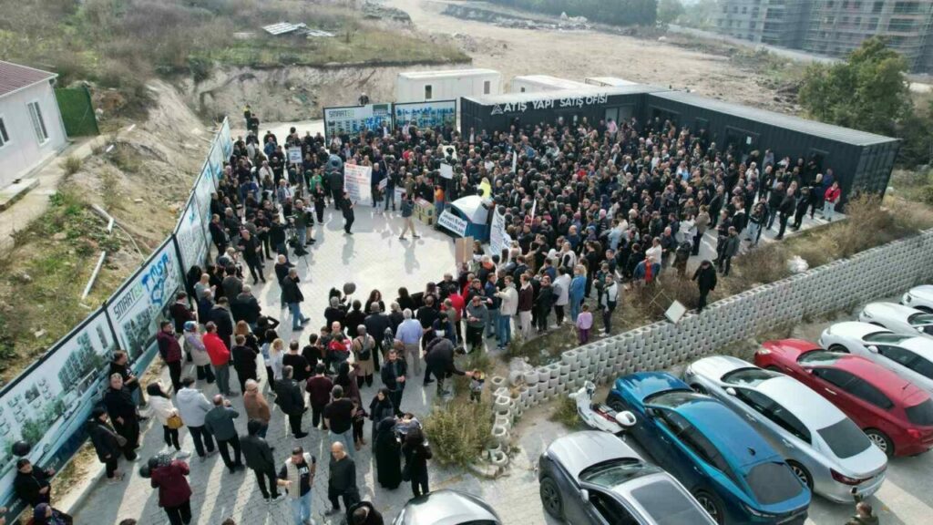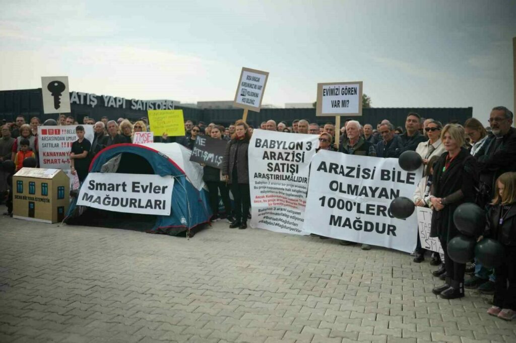 Bursa’da ev hayali kabusa dönen 3 bin 500 aile, şantiye önünde eylem yaptı. Mağdur aileler, gökyüzüne siyah balonlar bıraktı.