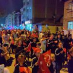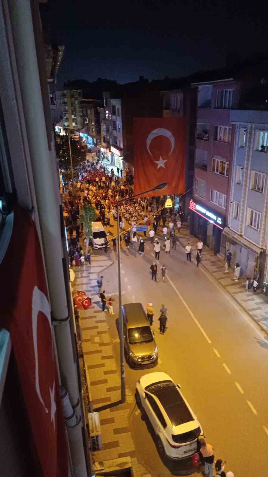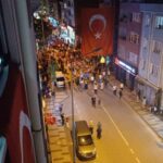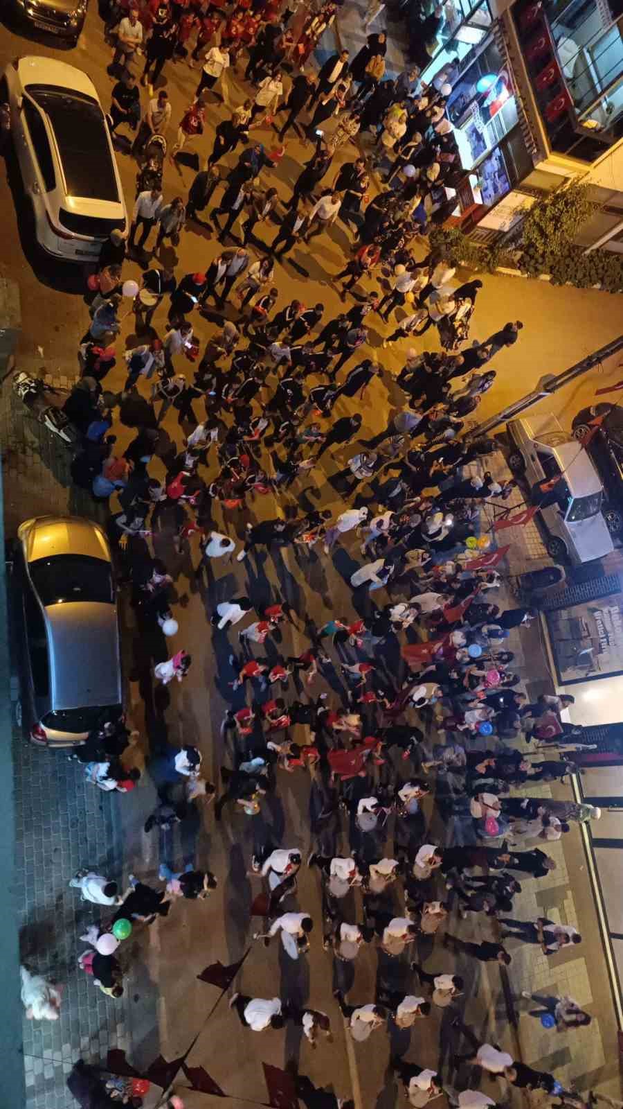 Şebboy Caddesi’ndeki apartmanlarda ikamet eden vatandaşlar, kortej yürüyüşü düzenledi. Yüzlerce vatandaşın katıldığı kortej, bando takımı öncülüğünde yürüdüler. Meşaleler eşliğinde yürüyen vatandaşlar, bayramı coşkuyla kutladılar.