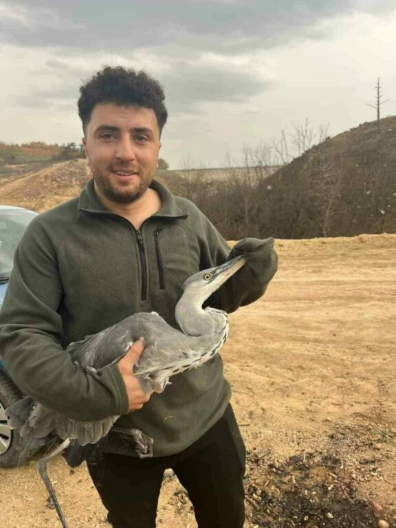 Mahsur kalan mavi balıkçıl kuşunu doğa gezisine çıkan gençler kurtardı