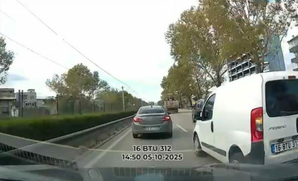 Olay, Nilüfer ilçesi İhsaniye Mahallesi anayolunda meydana geldi. Edinilen bilgiye göre, seyir halindeki ticari araç sürücüsü, yoğun trafikte hızla makas atarak ilerledi. Tehlikeli manevralar yapan sürücü, hem kendi canını hem de diğer sürücülerin hayatını tehlikeye attı.