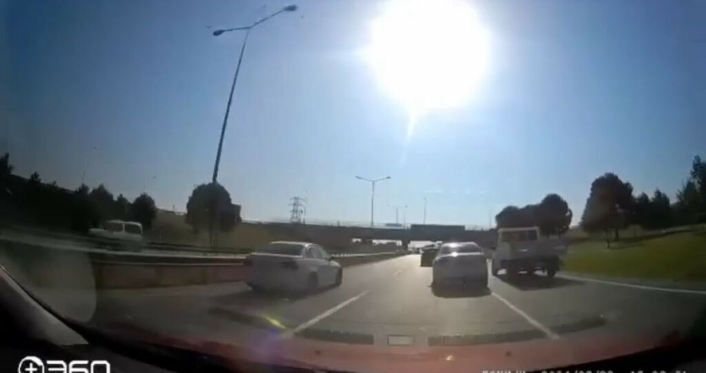 Bursa’da kimliği belirsiz bir otomobil sürücüsü, makas atarak ilerledi. Tehlikeli anlar kameraya yansırken, olayda neyse ki korkulan olmadı.