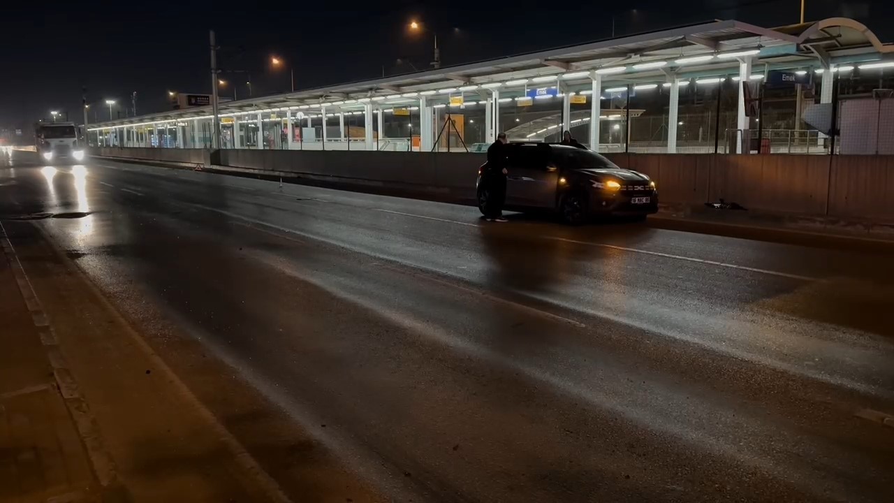 Bursa’da makas atan hafif ticari araç, başka bir araca çarparak kaza yaparken o anlar araç kamerasına yansıdı.