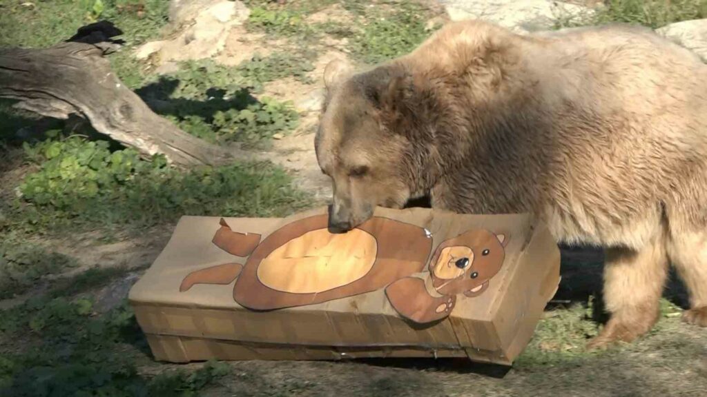 Hayvanların sağlığı, aktivitesi ve meraklarını geliştirmek için farklı çalışmalar yaptıklarını belirten bakıcı Arif Ardıç, “Hayvanlar bu şekilde, doğal ortamlarındaymış gibi, hem hareket ediyorlar, hem de avlanıyorlar. Bazen toprağa gömüyoruz. Oradan da buluyorlar. Bugün de kartondan ayı maketi yaptık. İçine sevdiği yiyecekler doldurup sabah servisini böyle yaptık” dedi.