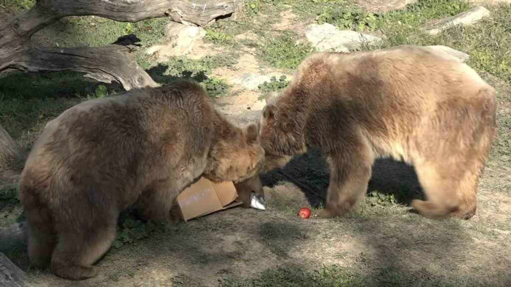 Bursa Hayvanat Bahçesinde bulunan boz ayılar, havaların mevsim normallerinin üzerinde seyretmesi sebebiyle kış uykusuna yatamadı. Ayıların doğal ortamlarındaki becerileri için yapılan çalışmalar ise, ilgiyle izlendi. Maket ayının içine saklanan balıkların kokusunu alan ayılar, ilk önce temkinli yaklaşsa da sonrasında maketi paramparça edip, balıkları afiyetle midesine indirdi.
