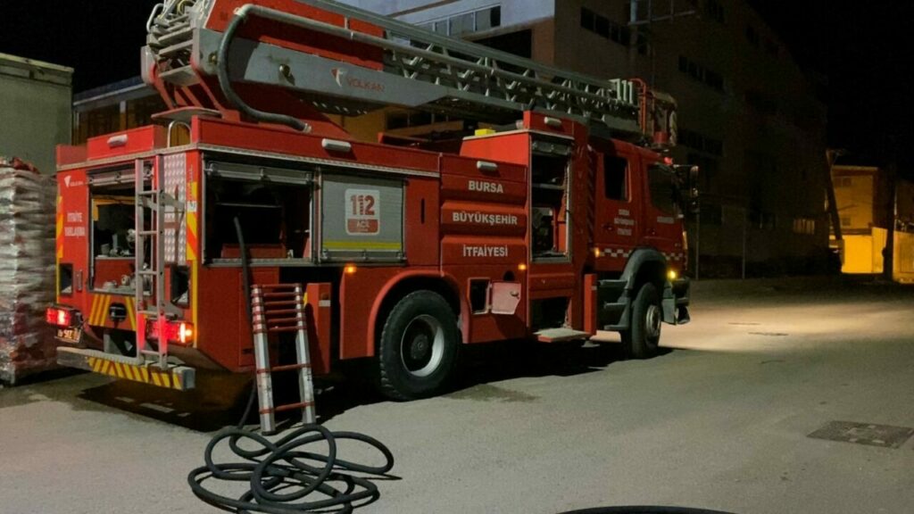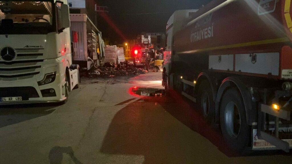 Bursa’nın İnegöl ilçesinde park halindeki mangal kömürü yüklü tırda yangın çıktı.
