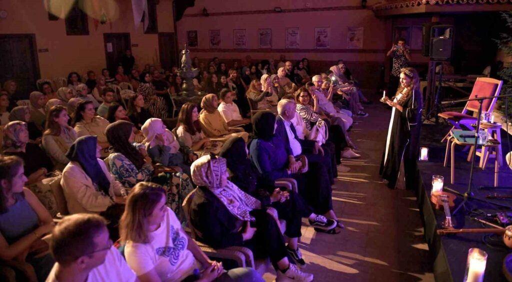 Osmangazi Belediyesi, ‘Şadırvanlı Han Avlu Buluşmaları’ adı altında düzenlediği etkinlikler ile Osmangazililere kültür sanat dolu akşamlar yaşatmaya devam ediyor. Geçtiğimiz hafta ‘Eylül’ün Nağmesi Türk Sanat Müziği Konseri’ ile başlayan etkinlikler, ‘Büyüklere Masal’ gecesi ile devam etti. Şadırvanlı Han Eğitim Akademisi’nde düzenlenen etkinliğe, Bursalı masal severler yoğun ilgi gösterdi. Renkli anların yaşandığı etkinlikte, Seher Kander, masallarını bu kez çocuklara değil, masala özlem duyan yetişkinlere anlattı. Enstrümanlarıyla anlatılan masallara eşlik eden Taner Baba ise geceyi müzik şölenine dönüştürdü. Kitle iletişim araçları ve internetin insan hayatına dahil olmadığı zamanlarda sosyal hayatta önemi olan masalların hatırlandığı etkinlikte katılımcılar keyifli bir gece geçirdi.