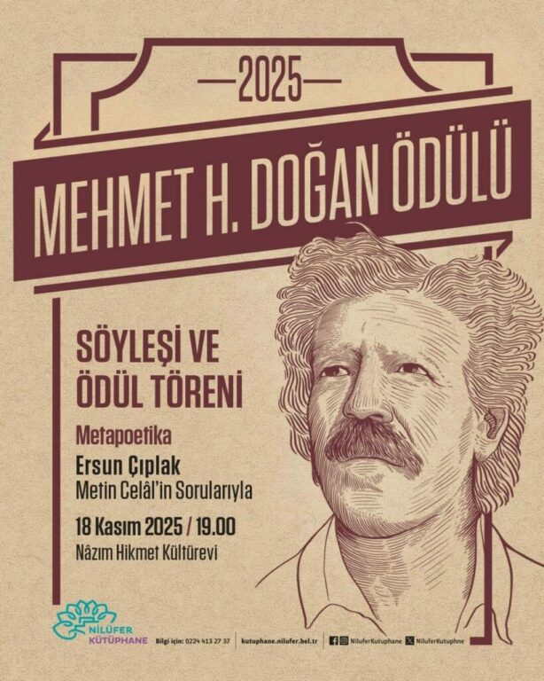 Nilüfer Belediyesi, Türk edebiyatına katkı sunan etkinliklerini sürdürüyor. Çağdaş Türk şiirinin önemli eleştirmenlerinden Mehmet H. Doğan’ın anısını yaşatmak ve Türkçe yayımlanmış şiir eleştirilerini görünür kılmak amacıyla düzenlenen Mehmet H. Doğan Ödül Töreni, 18 Kasım 2025 Salı günü saat 19.00’da Nazım Hikmet Kültürevi’nde gerçekleştirilecek. Nilüfer Belediyesi tarafından 2017 yılından bugüne 9 senedir düzenlenen ödüller için bu yıl da titiz bir ön çalışma yürütüldü. Metin Celal’in jüri başkanlığını üstlendiği seçici kurulda Asuman Susam, Gültekin Emre, Haydar Ergülen, Nilay Özer, Orhan Alkaya ve Orhan Tekelioğlu yer aldı.