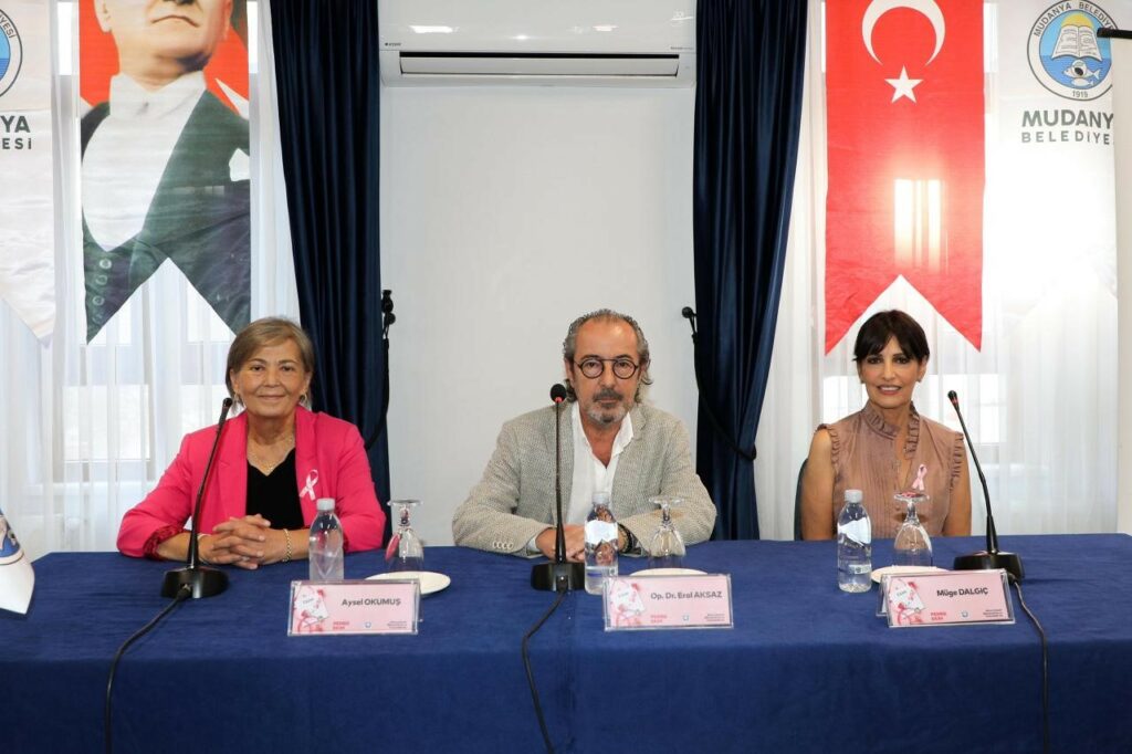 Mudanya Belediyesi’nin 1-31 Ekim Meme Kanseri Bilinçlendirme ve Farkındalık Ayı kapsamında Pembe Ekim sloganıyla düzenlediği etkinler, “Erken Teşhis Hayat Kurtarır” başlıklı söyleşi ile başladı. MUDAŞ Sosyal Tesisleri’nde gerçekleştirilen ve Op.Dr. Erol Aksaz, Müge Dalgıç ve Aysel Okumuş’un konuşmacı olarak katıldığı etkinlikte, erken teşhisin hayat kurtarıcı rolüne dikkat çekildi. Söyleşiye, Mudanya Belediye Başkanı Deniz Dalgıç, kadın belediye meclis üyeleri ile çok sayıda Mudanyalı kadın katılım sağladı.
