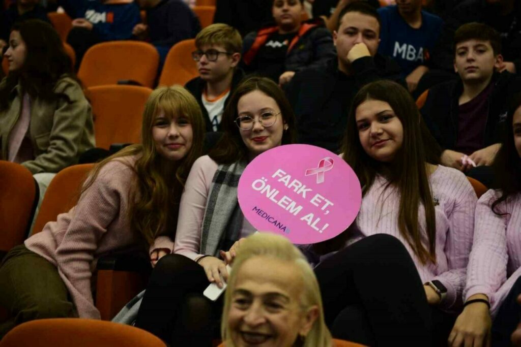 Etkinlik boyunca öğrenciler, meme kanseri farkındalığına destek olmak amacıyla hazırladıkları anlamlı pankartlarla erken teşhisin önemine dikkat çekti. Söyleşi, öğrencilerden gelen soruların uzmanlar tarafından yanıtlanmasıyla sona erdi.