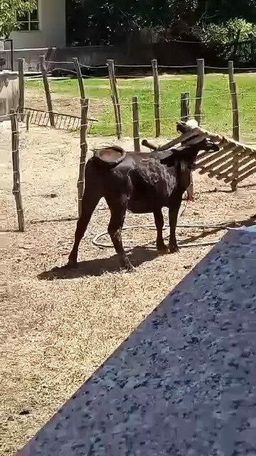 Bursa’da Karacabey ilçesi Kurşunlu Mahallesi’nde meraklı bir inek başını ahşap merdivene sıkıştırdı. Uzun süre merdivenden kurtulmak için çabalayan ineğe sahibi müdahale ederek kurtardı.