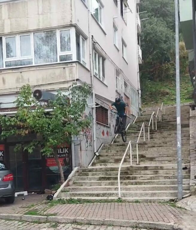 Bursa’da, downhill (tepeden inme) sporcusu, 225 basamaklı dik merdivenden bisikletle indiği anlar sosyal medyada viral oldu. Bu görüntülerden sonra sporcu genç tarihi sokakların arasında bulunan merdivenleri parkur olarak kullanmaya başlandı.