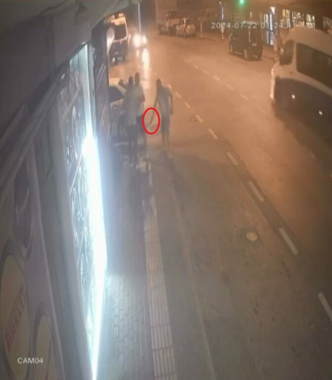 Bursa’da bir kişi, ağabeyinin eşini mesajla rahatsız eden kişiyi bulup bacaklarına arka arkaya ateş etti. Yerde kalan adamdan sinirini alamayan saldırgan üzerine bir de darp etti. O anlar güvenlik kamerasına yansırken, polis olay yerinden kaçan şüpheliyi kısa sürede yakaladı.