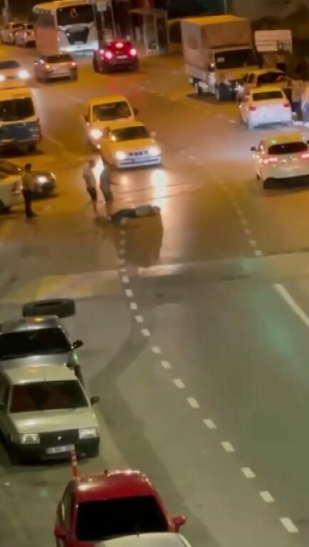 Cadde üzerindeki bir lastikçi dükkanın önünde buluşan ikili tartışmaya başladı. Kısa sürede büyüyen tartışma sonrası, A.B.’nin bıçak çekmesiyle M.U. araçtan aldığı tabanca ile, dükkan önünde bekleyen kişinin bacağına arka arkaya ateş etti. Sinirini alamayan şüpheli, kanlar içinde kalan adamın üzerine çıkıp yumrukla darp etti. Çevredekiler panik halinde 112 ekiplerini aradı. Şüpheli aracıyla olay yerinden kaçarken, sağlık ekipleri yaralıya olay yerinde yaptığı ilk müdahalenin ardından Çekirge Devlet Hastanesine sevk etti. Polis ekipleri, tahkikat başlatırken, şüpheliyi çok geçemeden yakaladı. Gözaltına alınan şüphelinin emniyetteki işlemleri devam ederken, kavga anı kameraya saniye saniye yansıdı.