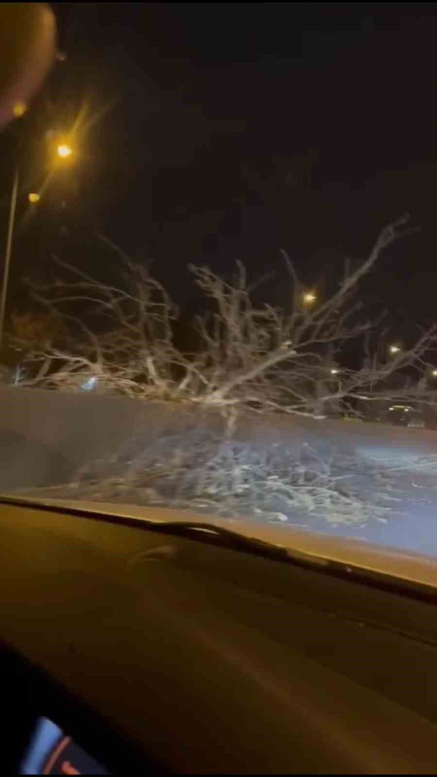 Bursa’da gece saatlerinde etkisini iyice artıran şiddetli lodos nedeniyle metro raylarına ağaç devrildi.