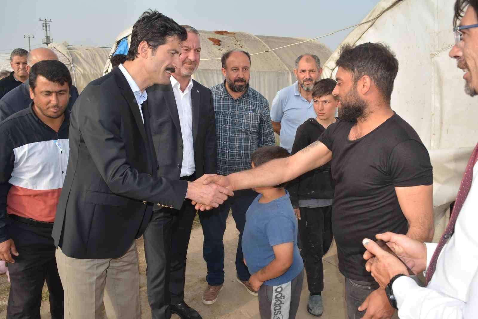 “İlçemize hoş geldiniz. Devlet her zaman yanınızda” diyen Karacabey Kaymakamı Hakan Kafkas, yerel yönetimle birlikte mevsimlik tarım işçilerinin yaşamlarını kolaylaştıracak ne varsa yapmaya gayret göstereceklerini söyledi. Kaymakam Kafkas ve Belediye Başkanı Karabatı ayrıca, çadırlarda kalan çocuklara çeşitli hediyeler dağıtarak onlarla sohbet etti.
