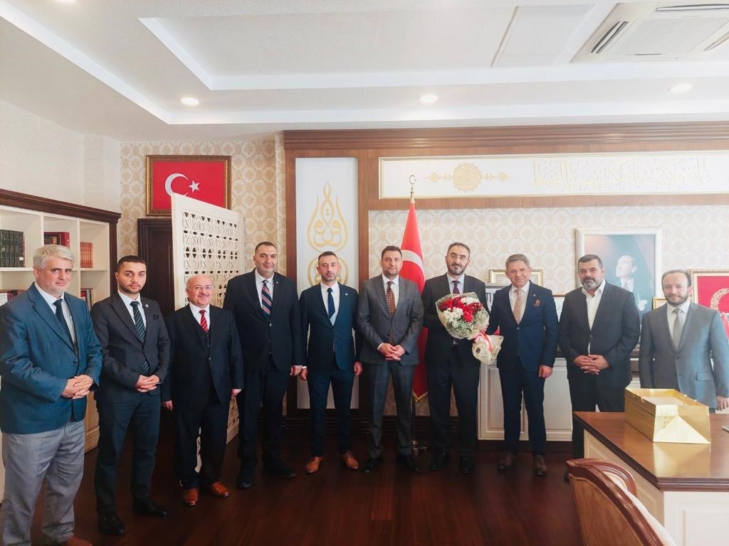 Milliyetçi Hareket Partisi Bursa İl Başkanı Muhammet Tekin, İl Başkan Yardımcısı Özgün Güneş, Türk Diyanet Vakıf-Sen Genel Başkan Yardımcısı Hilmi Şanlı, Bursa Şube Başkanı Eyüp Bulut ve İl Müftülüğü İş Yeri Temsilcisi Hasan Altay’dan oluşan heyet Bursa İl Müftüsü Yavuz Selim Karabayır’ı makamında ziyaret etti. “Her minareye bir bayrak, her minareye bir sancak” sloganıyla kampanya başlattıklarını söyleyen Tekin, “Türkiye Cumhuriyeti’nin 100. yılını idrak edeceğimiz 29 Ekim 2023 tarihinde ‘her minareye bir bayrak, her minareye bir sancak’ sloganımızla kuruluş şehri Bursa’da böyle bir kampanya başlatmak için ilk bayrağımızı da size takdim etmek istiyoruz” dedi.