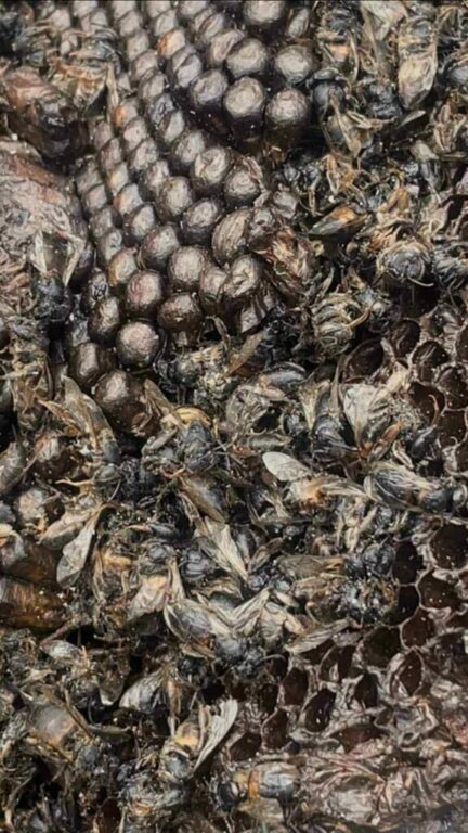 Gece saatlerinde ateşi görüp kovanını bırakan arılar bir daha dönmezken, kovanda kalanlar da öldü. Kovan içinde yanmış arıların ve henüz uçamamış yavruların görüntüsü yürekleri sızlatırken milyonlarca arı kaybının yaşanması bölge tarımı açısından da endişeye sebep oluyor.