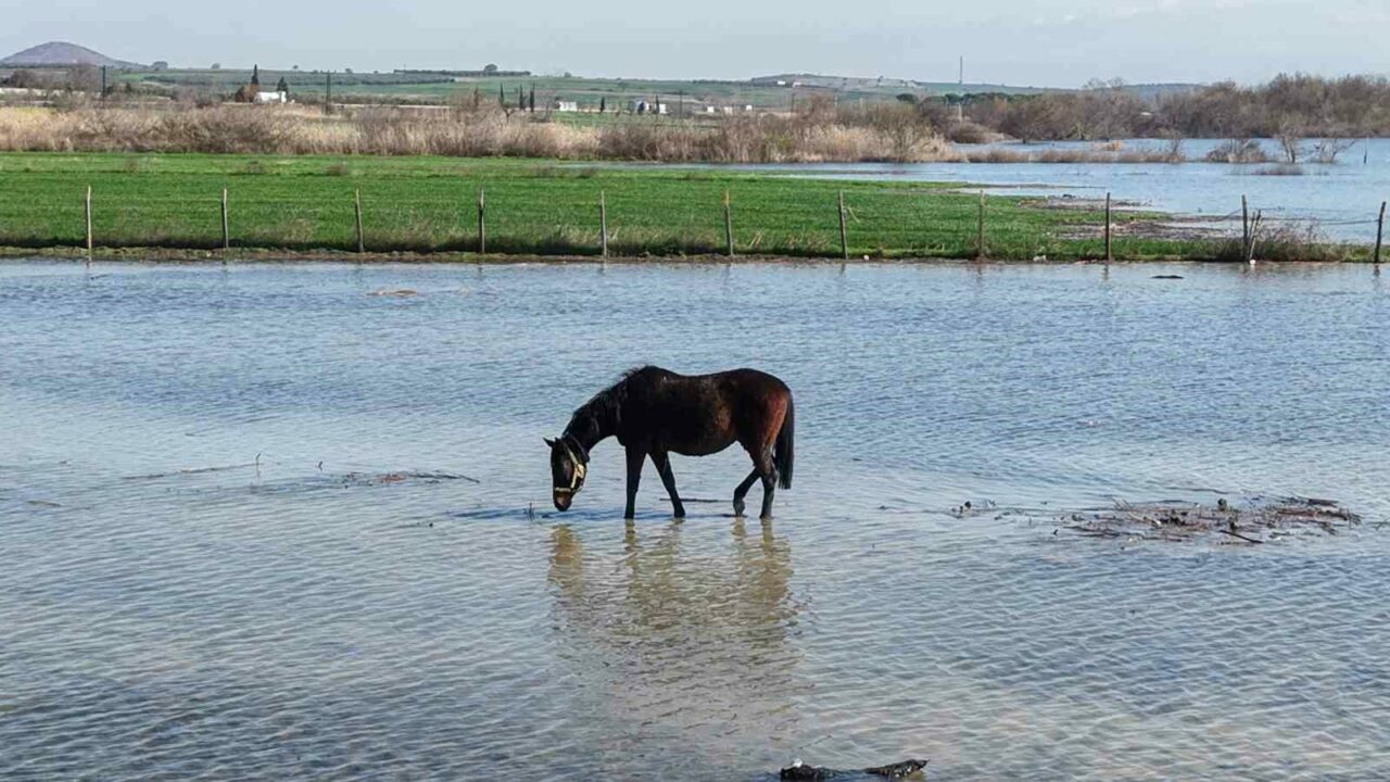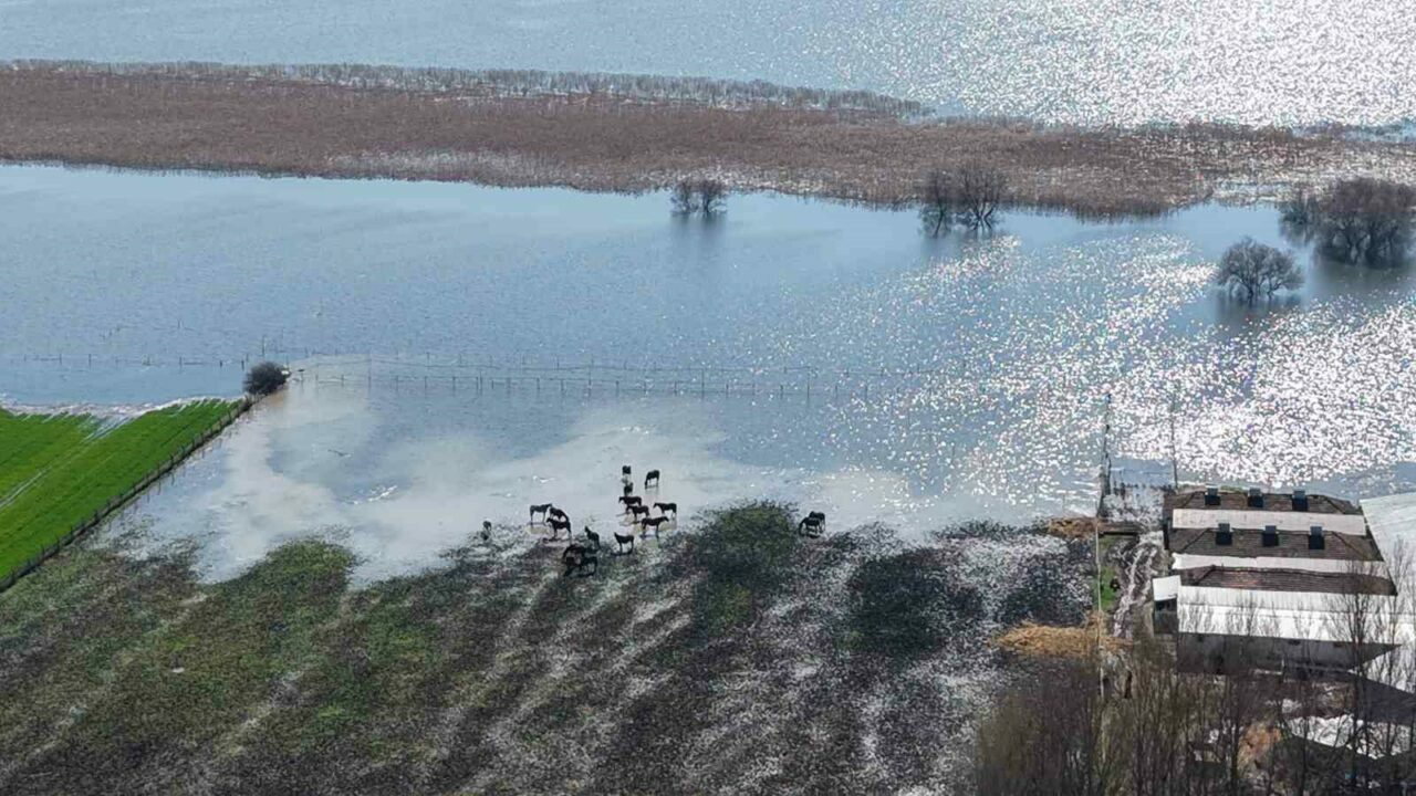 Bursa’nın Karacabey ilçesindeki Uluabat Gölü’ne yakın milyonluk yarış atlarının bulunduğu tavlalar su altında kaldı. Atlar, su içinde gezinirken drone ile görüntülendi. Bursa merkez ile özellikle tarımsal üretimin yapıldığı ilçelerinde mevsim normallerinin üzerinde yağış oldu. Şubat ayı uzun yıllar ortalaması metrekaraye 75 kilogram olan Bursa’ya bu yılın aynı ayın 24’üne kadar 105 kilogram yağış oldu. Karacabey’e 98 […]