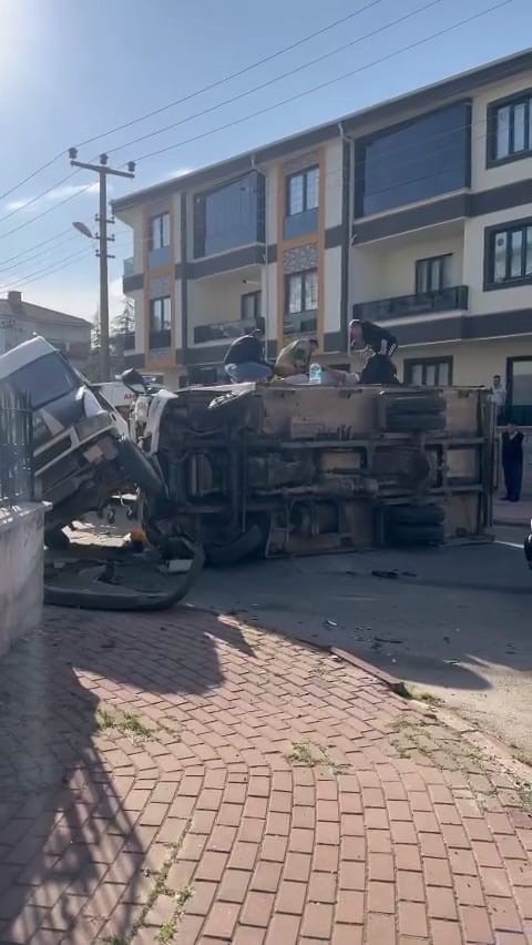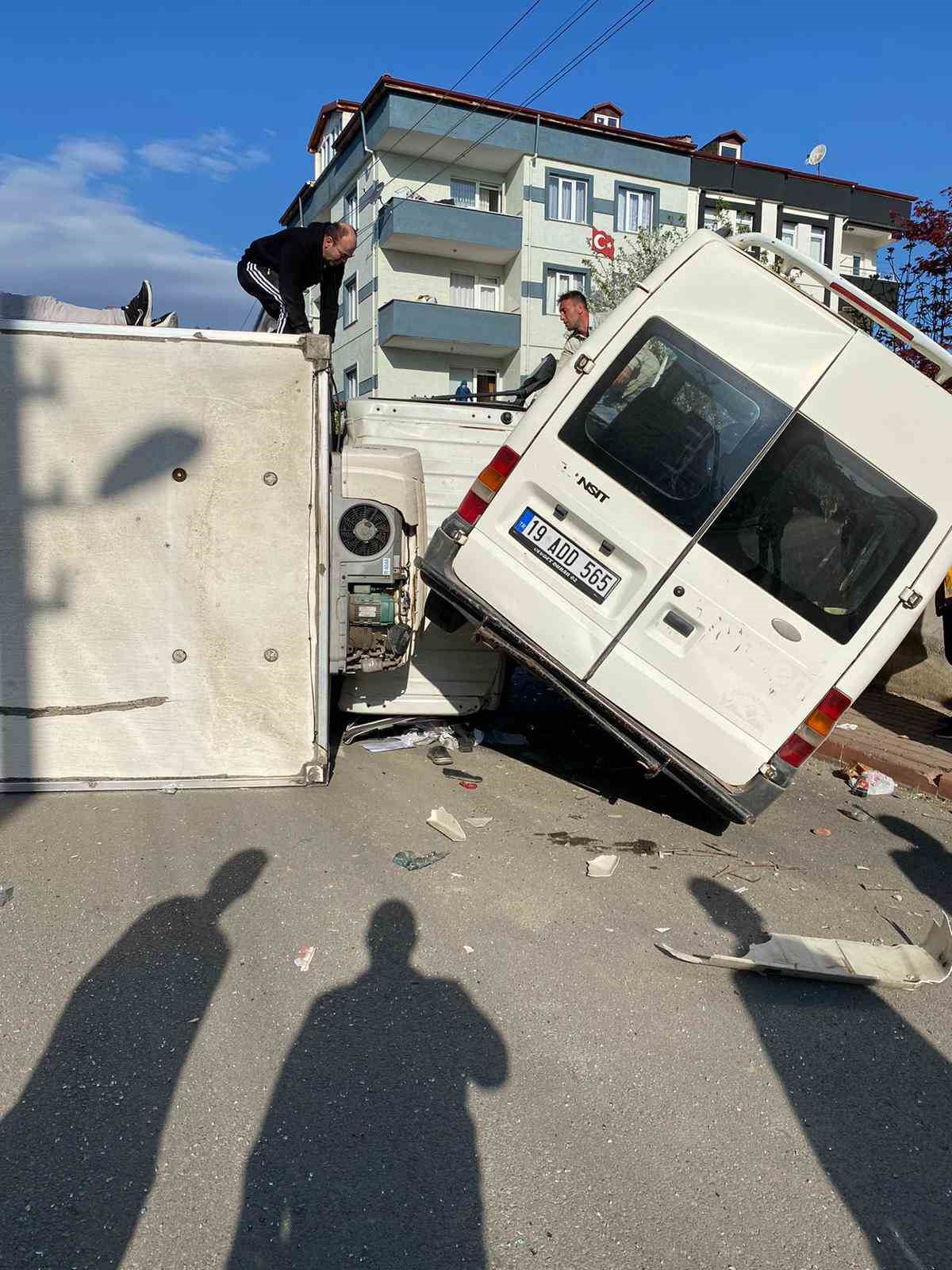 Kaza, saat 08.00 sıralarında Kemalpaşa Mahallesi Paşaören ile Hicran Sokak’ın kesiştiği kontrolsüz kavşakta meydana geldi. Paşaören Sokak’ta seyreden sürücü Yusuf Ç. (30) yönetimindeki 34 FJ 8723 plakalı kamyonet, Hicran Sokak’tan çıkan sürücü İsmail D. (21) idaresindeki 19 ADD 565 plakalı minibüse yandan çarptı. Çarpmanın etkisiyle kamyon devrilirken, minibüs askıda kaldı. Kaza sonucu sürücüler ile minibüsteki yolcu Faruk Ç. (32) yaralandı.