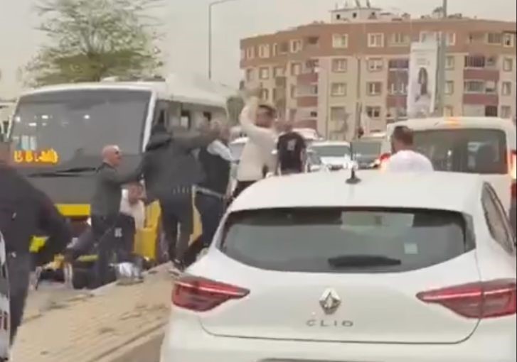 Olay, Nilüfer ilçesi Odunluk Mahallesi’nde meydana geldi. İddiaya göre, yolcu dolu araçla seyir halinde olan iki minibüs şoförü; yol verme tartışmasına girdi. Artan tansiyon sonrası araçtan inen taraflar ne yolculara, ne de trafiğe aldırış etmeden bir anda kavgaya tutuştu. İki şoförün birbirine yumruk ve sopayla saldırdığı anlar kameraya yansırken, kavgayı çevredekiler güçlükle ayırdı.