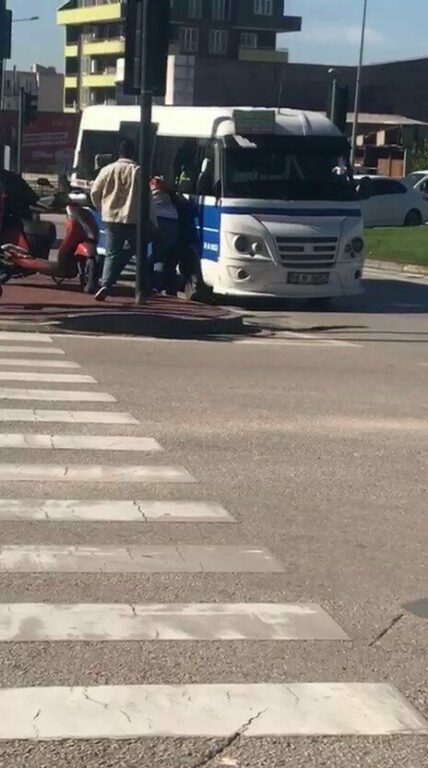 Olay, Yıldırım ilçesi Esenevler Mahallesi’nde cadde üzerinde meydana geldi. İddiaya göre, seyir halindeki minibüs şoförü ile bir motokurye arasında yol verme tartışması yaşandı. Sözlü atışmanın ardından taraflar araçlarını durdurarak birbirine girdi. Kavgayı çevredeki vatandaşlar araya girerek güçlükle ayırdı.