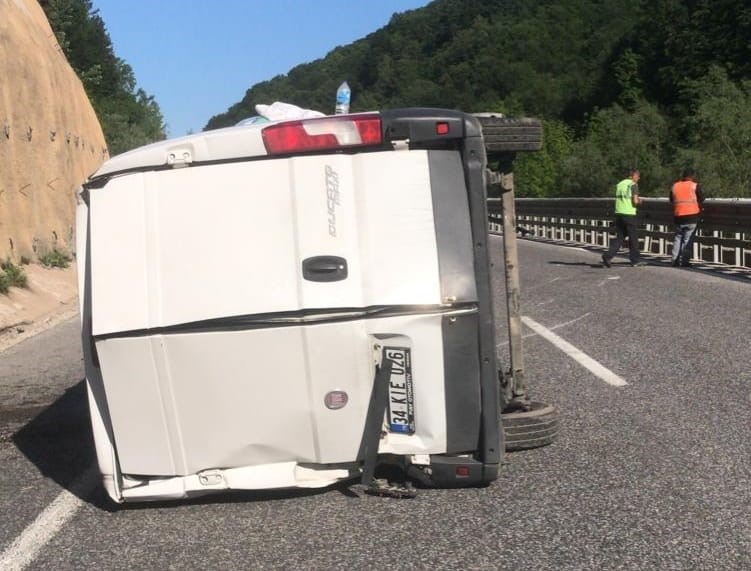 Bozüyük istikametinden İnegöl istikametine seyir halinde Samet A. (19) idaresindeki 34 KIE 026 plakalı minibüs, sürücüsünün kontrolünden çıktı. Bariyerlere çarpan araç kazanın şiddetiyle devrildi, sürücü yaralandı.