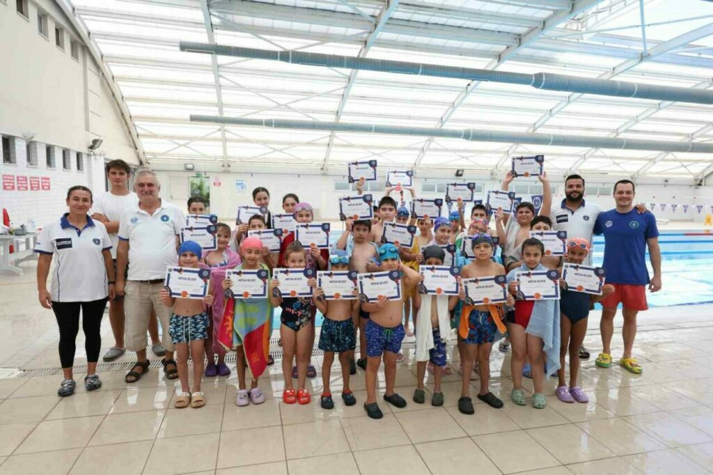 Çocukların yaz tatilinde hem spor yapma hem de eğlenme fırsatı bulduğu Yaz Spor Okulları kapsamında yüzme eğitimlerini tamamlayan minikler sertifikalarını aldı. Haftanın 4 günü olmak üzere 2 hafta eğitim verilen yüzme çalışmalarında çocuklar, Bursa Büyükşehir Belediyesi’nin Fethiye, Mihraplı, Kestel ve Gürsu Yüzme Havuzları’nda sporla buluşma imkanı buldu. Yüzme kurslarında 6-13 yaş aralığındaki çocuklar eğitim alırken, minik kulaçlar dönem sonunda sertifikalarına kavuşmanın mutluluğunu yaşadı.