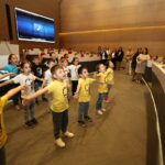 Nilüfer’deki anaokulları öğrencileri, 23 Nisan Ulusal Egemenlik ve Çocuk Bayramıkapsamında ziyaret ettikleri Halk Evi’ni bayram yerine çevirdi. Nilüfer’deki farklı okullardan yaklaşık 146 öğrenci Nilüfer Belediye Başkanı Şadi Özdemir ile Halk Evi’ndeki Barış Meclisi Salonu’nda buluştu. Nilüfer’de bulunan Emine Örnek, Görükle Çocuk Akademisi, Özel Efe Sarp, Canaydın, Özel Yiğitalp ve Özel Ege Berk anaokullarından gelen öğrenciler, okudukları şiirler, seslendirdikleri şarkılar ve sergiledikleri gösterilerle bayram coşkusu yaşattı. Miniklerin ellerinde Türk bayraklarıyla yaşadıkları coşkuya Başkan Şadi Özdemir de ortak oldu.