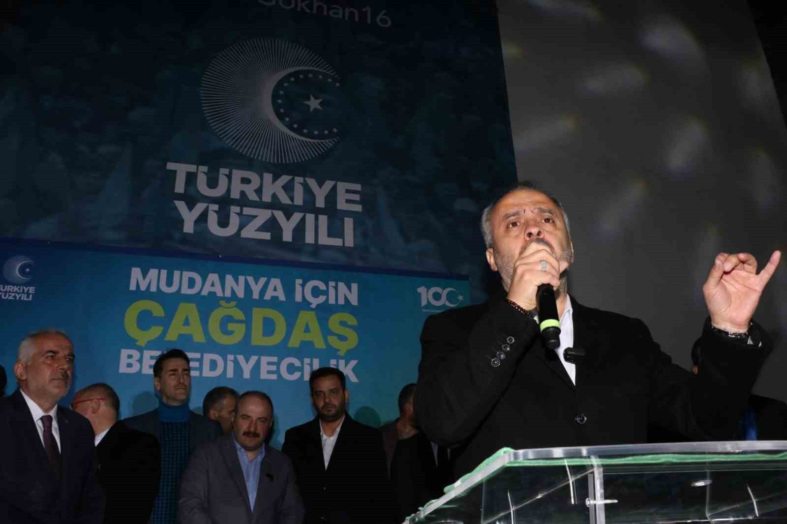Bursa Büyükşehir Belediye Başkanı Alinur Aktaş da, “İnşallah 31 Mart’ta Mudanya’yı AK Parti belediyeciliği ile yeniden hizmetle buluşturacağız. Gökhan benim kardeşim, evladım gibi. Beraber görev yaptık. Gökhan kardeşime sahip çıkmanızı istiyorum. Mudanya’yı turizm anlamında da ileri taşımak inşallah bize nasipolacak”dedi.