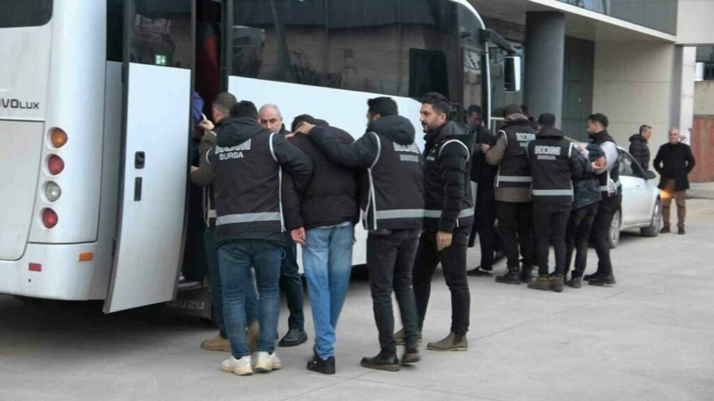 Operasyon kapsamında toplam 8 şüpheli gözaltına alınırken, 2 şüpheli tutuklandı. Gözaltındaki 6 şüpheli de sorgularının ardından Bursa Cumhuriyet Başsavcılığı’na sevk edildiler.