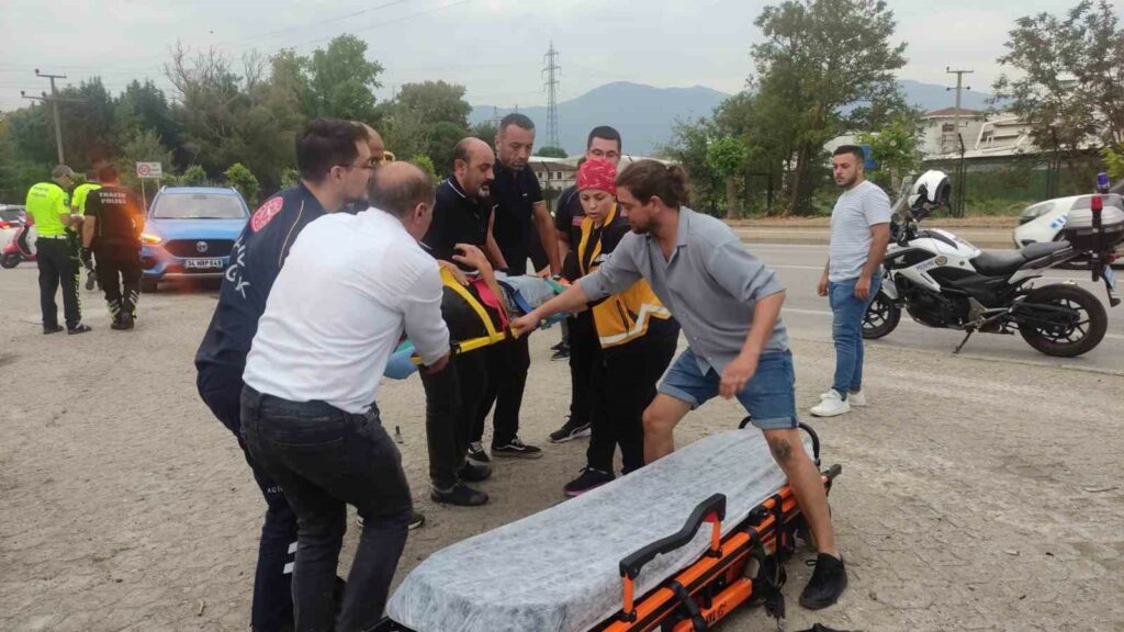 Bursa’nın Orhangazi ilçesinde ana yoldan yan yola dönüş yapmak isteyen bir otomobile, aynı yönde giden motosiklet çarptı. Savrulan motosiklette bulunan sürücü ile arkasındaki bir yolcu yaralandı.