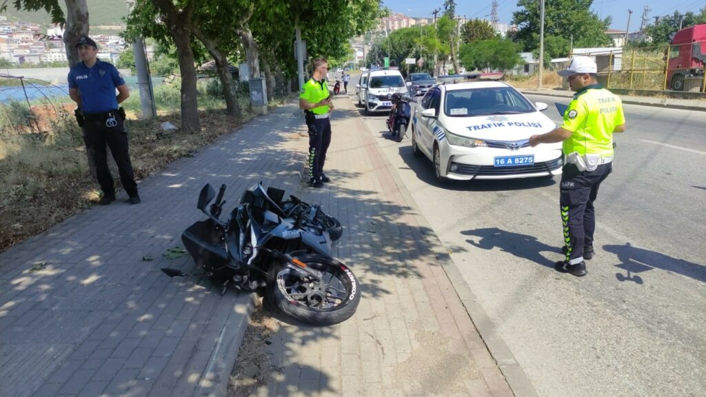 Bursa’nın Orhangazi ilçesinde Göl Yolu üzerinde seyir halindeki bir motosiklet henüz belirlenemeyen bir nedenle kontrolden çıkarak devrildi. Metrelerce sürüklenen motosikletin sürücüsü ağır yaralandı.